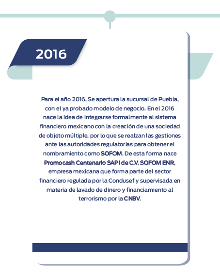 | 694804 | Promocash Centenario, S.A.P.I. de C.V., SOFOM, E.N.R. | Promocash | En operación | Sociedades Financieras de Objeto Múltiple E.N.R. | Puebla | 03/01/2023 Generales |