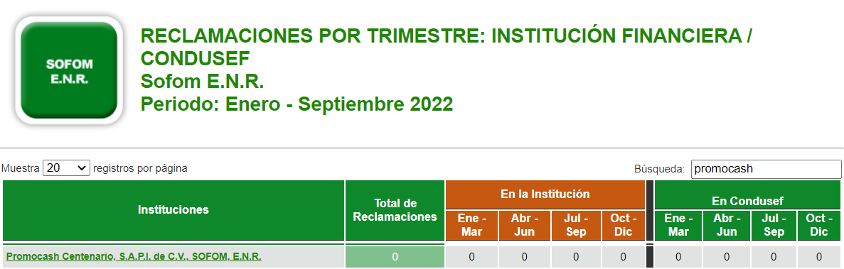 | 694804 | Promocash Centenario, S.A.P.I. de C.V., SOFOM, E.N.R. | Promocash | En operación | Sociedades Financieras de Objeto Múltiple E.N.R. | Puebla | 03/01/2023 Generales |